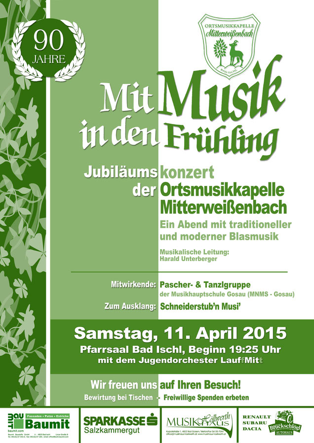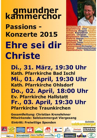 Der Chorleiter Christian Krenslehner bietet aus diesem Anlass zwei öffentliche Chorproben an. Die erste Probe findet am Donnerstag, 16. April 2015 und die zweite am 30. April 2015, jeweils um 20:15 Uhr in der HAK Gmunden statt.